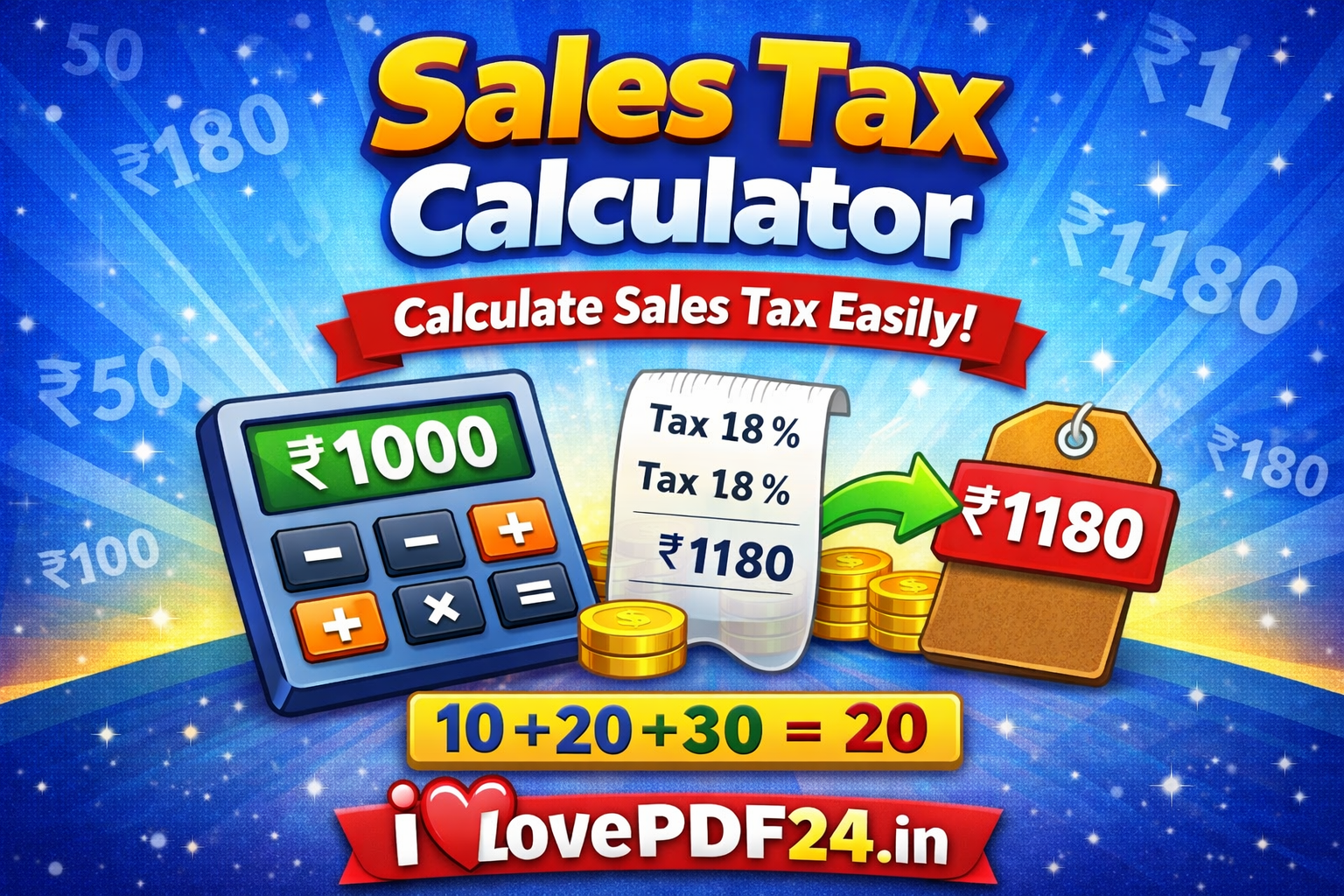 Sales Tax Calculator ek free online tool hai jo product ya service par lagne wale sales tax ko easily calculate karne me madad karta hai. Is tool se aap sales tax amount aur total price (tax ke saath) turant nikal sakte ho. Bas original price aur tax rate enter karein aur accurate result paayein – bina signup, sirf iLovePDF24.in par.